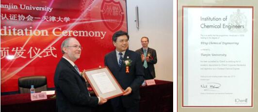 2007年3月,天津大學(xué)化學(xué)工程專業(yè)國際認證領(lǐng)導(dǎo)小組和工作小組成立,通過系統(tǒng)學(xué)習(xí)認證規(guī)則、收集和整理認證資料、撰寫認證報告、培訓(xùn)教職員工等方式,著力推動相關(guān)工作進行。2008年7月,天津大學(xué)正式提交國際認證報告和相關(guān)資料。2008年10月,IChemE專業(yè)認證專家組到天津大學(xué)進行考察。2009年4月,IChemE專業(yè)認證委員會主席ColinWebb教授親自到天大,將化學(xué)工程專業(yè)認證證書頒發(fā)給天津大學(xué)。