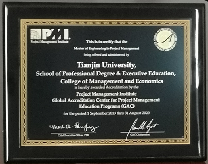 2022年,天津大學(xué)管理與經(jīng)濟(jì)學(xué)部工程管理專業(yè)管理學(xué)學(xué)士學(xué)位項(xiàng)目(Bachelor of Construction Management)通過(guò)美國(guó)項(xiàng)目管理協(xié)會(huì)全球項(xiàng)目管理學(xué)位鑒定中心(PMI-GAC)的認(rèn)證,有效期至2025年8月31日。目前,國(guó)內(nèi)僅8所院校的相關(guān)學(xué)位項(xiàng)目通過(guò)了PMI-GAC認(rèn)證。天津大學(xué)工程管理專業(yè)前身為1981年成立的“基本建設(shè)管理工程專業(yè)”和1993年成立的“國(guó)際工程管理專業(yè)”,后合并為工程管理專業(yè)。專業(yè)獲評(píng)“首批教育部第一類特色專業(yè)”,四次獲得住建部與英國(guó)皇家特許建造學(xué)會(huì)(CIOB)的聯(lián)合認(rèn)證,本科及碩士課程曾獲得英國(guó)皇家特許測(cè)量師學(xué)會(huì)(RICS)課程認(rèn)證。2019年獲首批國(guó)家級(jí)一流本科專業(yè)建設(shè)點(diǎn),中國(guó)項(xiàng)目管理發(fā)展二十年成果獎(jiǎng)。